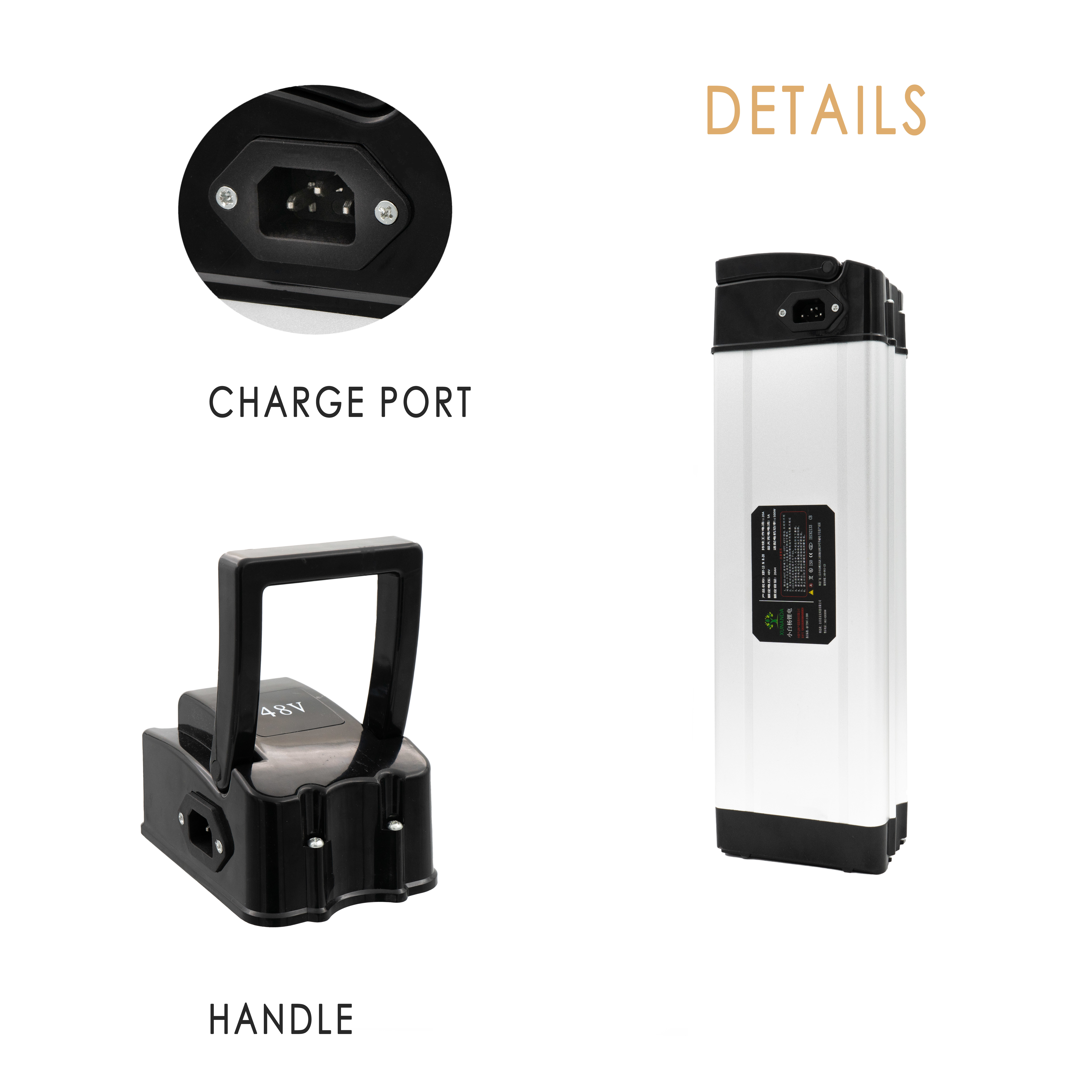 Poisson d'argent batterie de vélo 48V 15Ah batterie lithium-ion pour vélo électrique